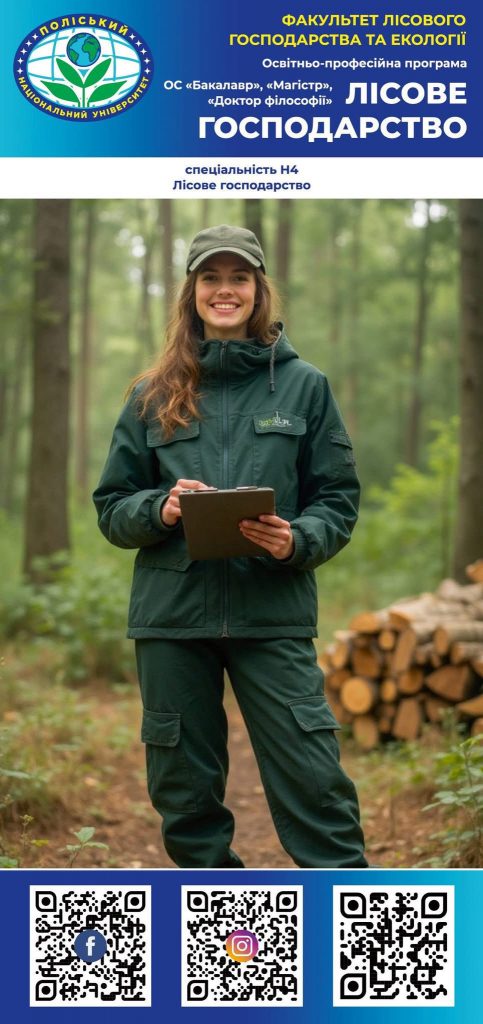 Спеціальність «Лісове господарство» — це вибір для тих, хто хоче поєднати любов до природи з престижною та потрібною професією. Лісівник — це фахівець, якого потребує держава, бізнес і планета. Обираючи лісове господарство, ти обираєш професію з характером, перспективою і гордістю за результат своєї роботи. Тут ти стаєш тим, хто відновлює ліси, захищає екосистеми, працює з сучасними технологіями та реально впливає на екологічне майбутнє України.