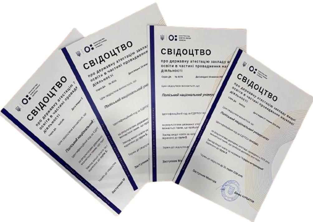 Наукова діяльність Поліського національного університету позитивно атестована Міністерством освіти та науки України за чотирма науковими напрямами: