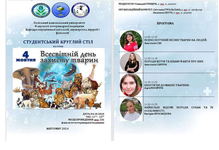 Студентський круглий стіл присвячений Всесвітньому дню захисту тварин (4 жовтня 2024)