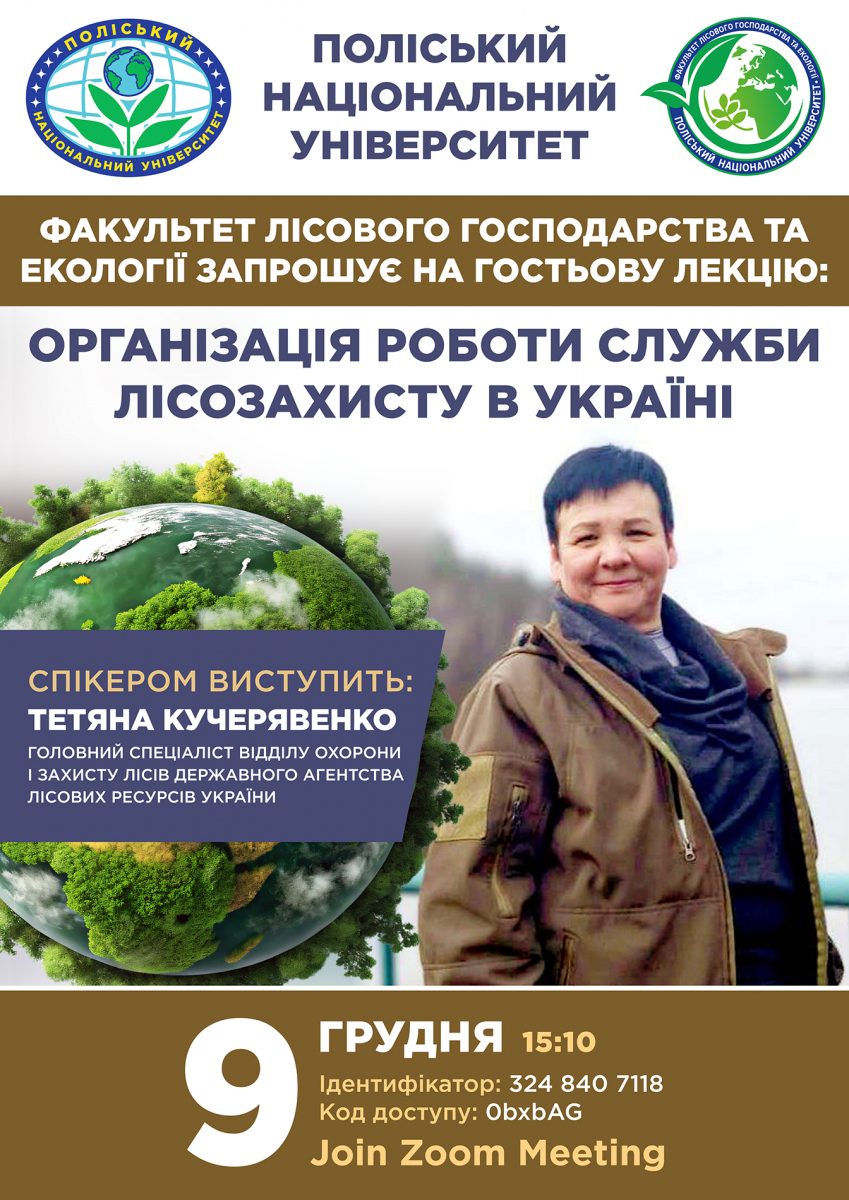 9 грудня 2025 року для студентів спеціальності “Лісове господарство” ОС “Бакалавр” та ОС “Магістр” відбулась гостьова лекція, у змішаному форматі, на тему: “Організація роботи служби лісозахисту в Україні” від професіонала-практика, Головного спеціаліста відділу охорони і захисту лісів Державного агентства лісових ресурсів України – Тетяни Кучерявенко!