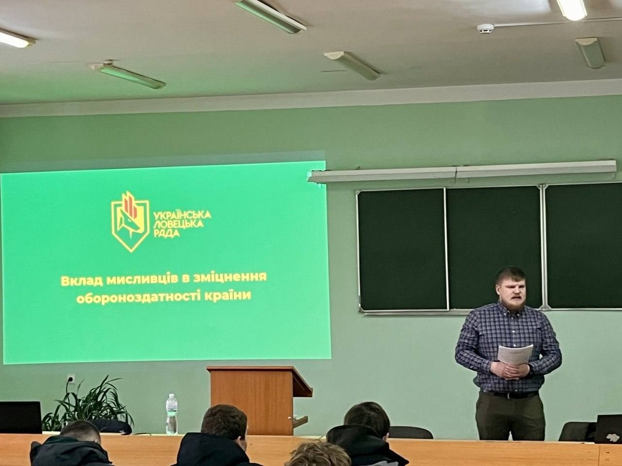Пан Адріан ознайомив студентів та викладачів факультету лісового господарства та екології з основними аспектами діяльності Української Ловецької Ради. Також у ході жвавої дискусії обговорили ключові питання розвитку мисливського господарства в Україні.