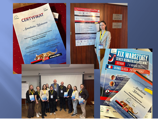 8–9 березня 2025 року здобувачка ОПП «Ветеринарна медицина» Мойсеєва Анастасія взяла участь у XIX секції дерматології Польської асоціації ветеринарних лікарів дрібних тварин у місті Устронь (Польща).