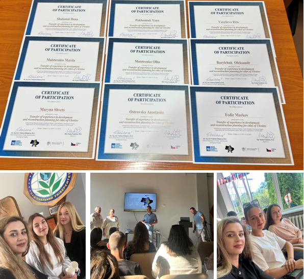 Наступного, 2024 року, четверо студенток спеціальності “Садово-паркове господарство”: Васильєва Ріта, Майстренко Ольга, Майстренко Марія, Пахомюк Яна скористалися можливістю навчання у Чеському технічному університеті на тему “Transfer of experience in planning the development and renewal of Ukrainian cities ”.