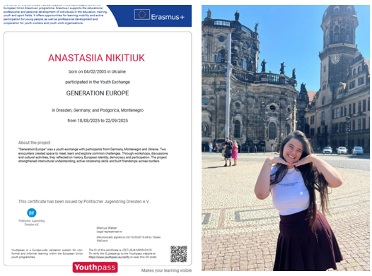Крім того, у 2025 році студентка Анастасія Нікітюк отримала міжнародний досвід, взявши участь у програмі обміну Erasmus+ у Німеччині.