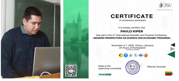 Студент другого курсу Павло Кіпер у 2025 році був учасником Міжнародної науково-практичної конференції “Modern perspectives on science and economic progress”у Вільнюсі (Литва).