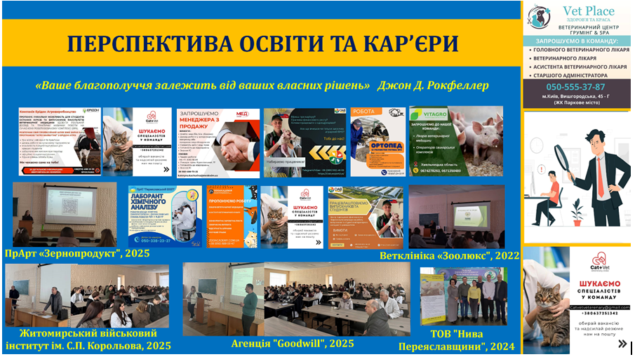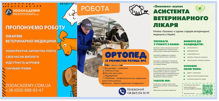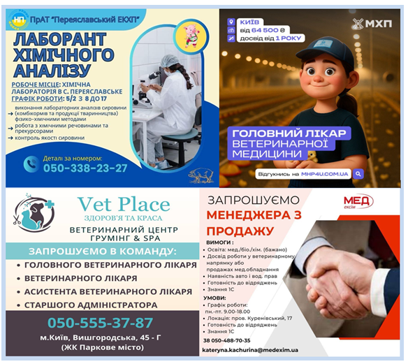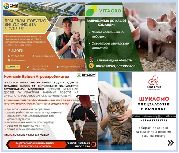 Щорічно проводяться дослідження ринку праці, що дозволяє глибоко розуміти сучасні потреби роботодавців ветеринарного сектору та тенденції розвитку галузі. Аналіз офіційних вебсайтів компаній, платформ із вакансіями та професійних спільнот забезпечує актуальну інформацію про попит на фахівців ветеринарної медицини, вимоги до їхніх компетентностей та можливості професійної реалізації.