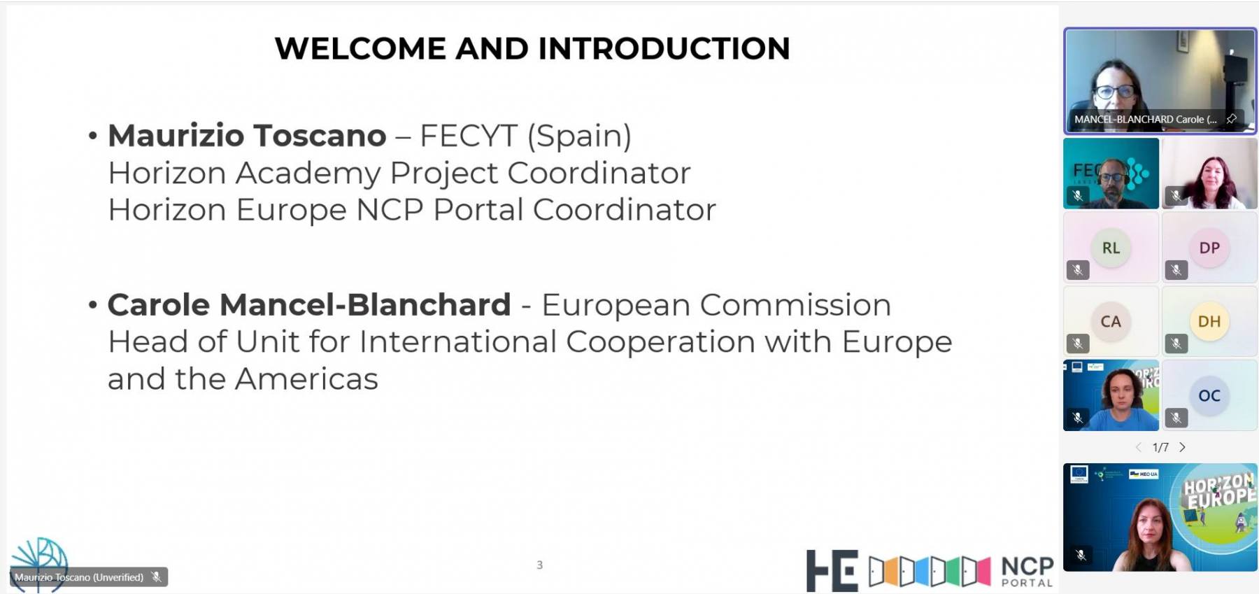 Подію відкрили з вітальними промовами Мауріціо Тоскано, координатор проєкту Horizon Academy, і Кароль Мансел-Бланшар, керівниця відділу міжнародного співробітництва, Європа та Америка, ЄК.