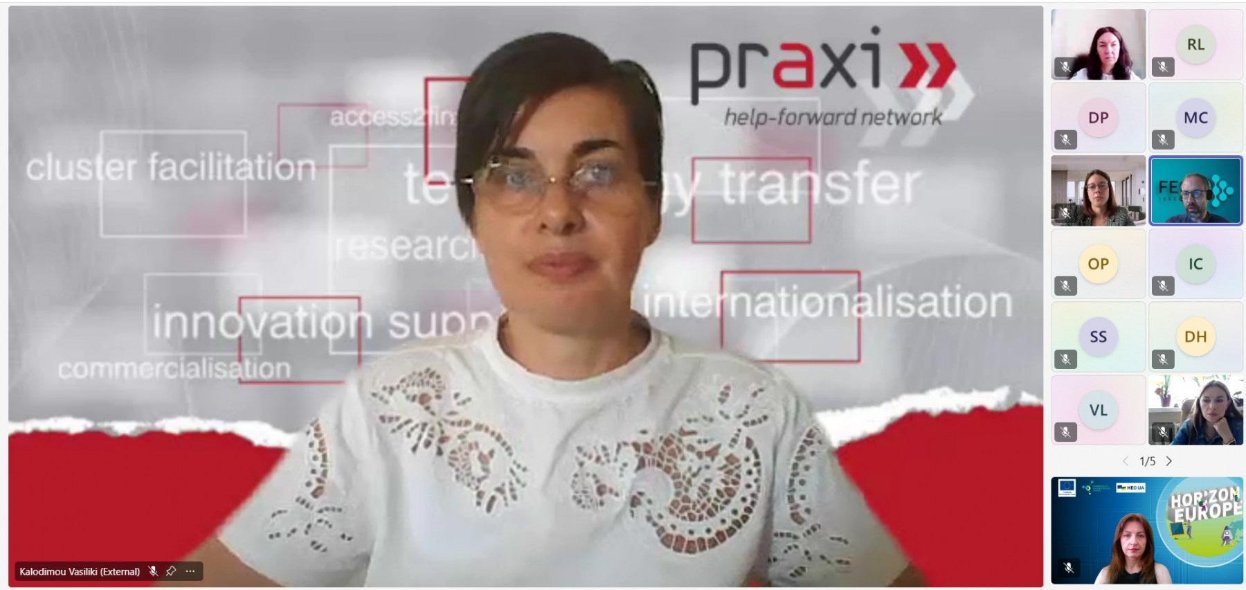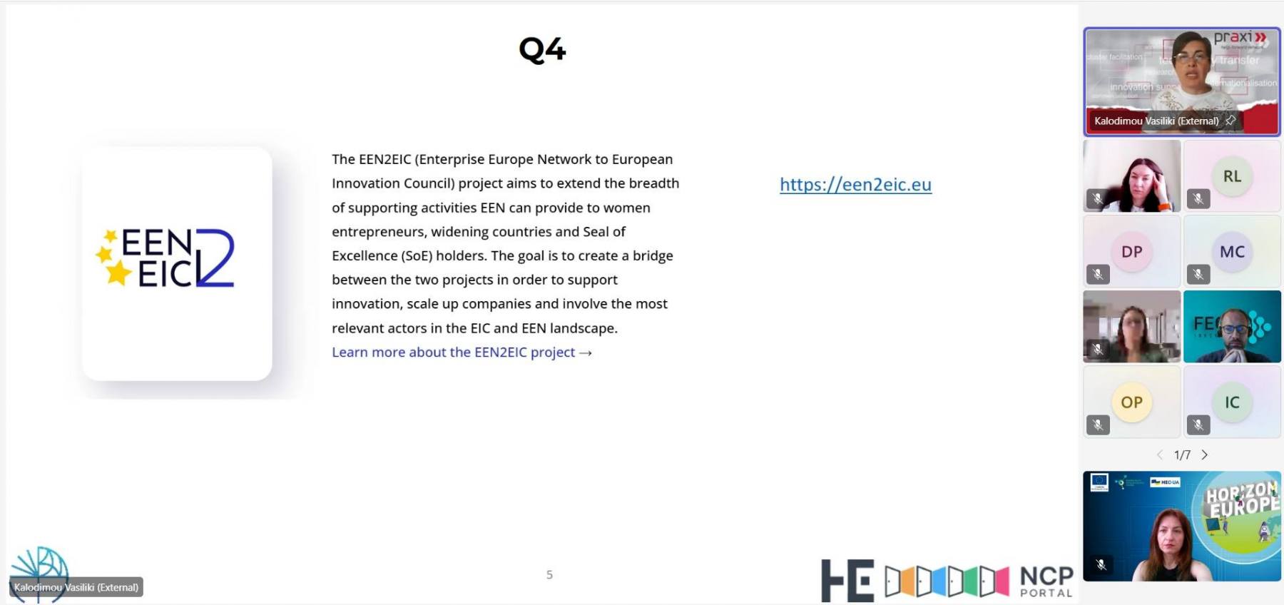 Під час першої сесії представниці НКП Васілікі Калодіму, спеціалістка з наскрізного компонента Програми «Розширення участі та зміцнення європейського дослідницького простору» (WIDERA), Греція, та Тамара-Катаріна Мітіска, яка відповідає за фінансові та юридичні аспекти, Австрія, презентували свою діяльність. Також спікерки відповідали на різноманітні питання щодо функціонування Програми «Горизонт Європа» від учасників, що були надіслані заздалегідь чи виникали безпосередньо під час трансляції заходу.