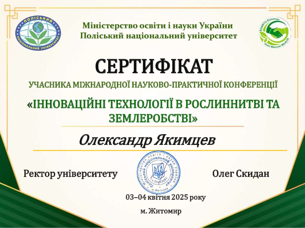 Науковий керівник: Світлана Василівна СТОЦЬКА, кандидат сільськогосподарських наук, доцент.