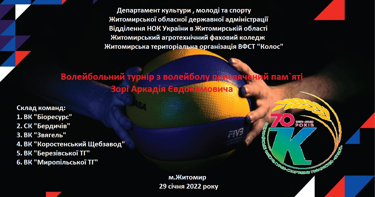 Довідково: Аркадій Євдокимович Зоря був відомим громадським і політичним діячем. Свого часу займав посаду директора Житомирського агротехнічного коледжу. Працюючи на цій посаді, він доклав багато зусиль для розвитку волейболу не лише в коледжі, але й у Житомирській області. За його керівництва волейбольна команда навчального закладу виборювала призові місця на різних турнірах серед вишів агропромислового комплексу.