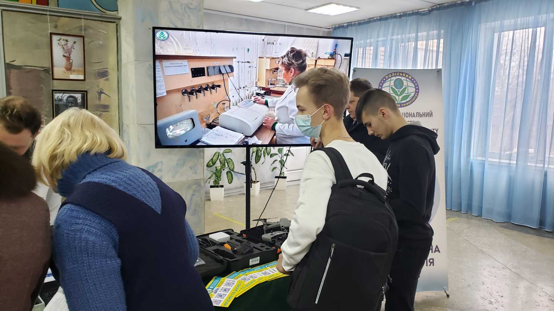 Зокрема, близько 70 учасників обласного етапу конкурсу-захисту науково-дослідницьких робіт МАН могли ознайомитися з діяльністю Поліського національного університету. До їх уваги було представлено роздаткові матеріали з інформацією про факультети й спеціальності, а також локації ННКД лабораторії ветеринарної медицини і вимірювальної лабораторії з відповідним обладнанням та можливістю випробувати його.