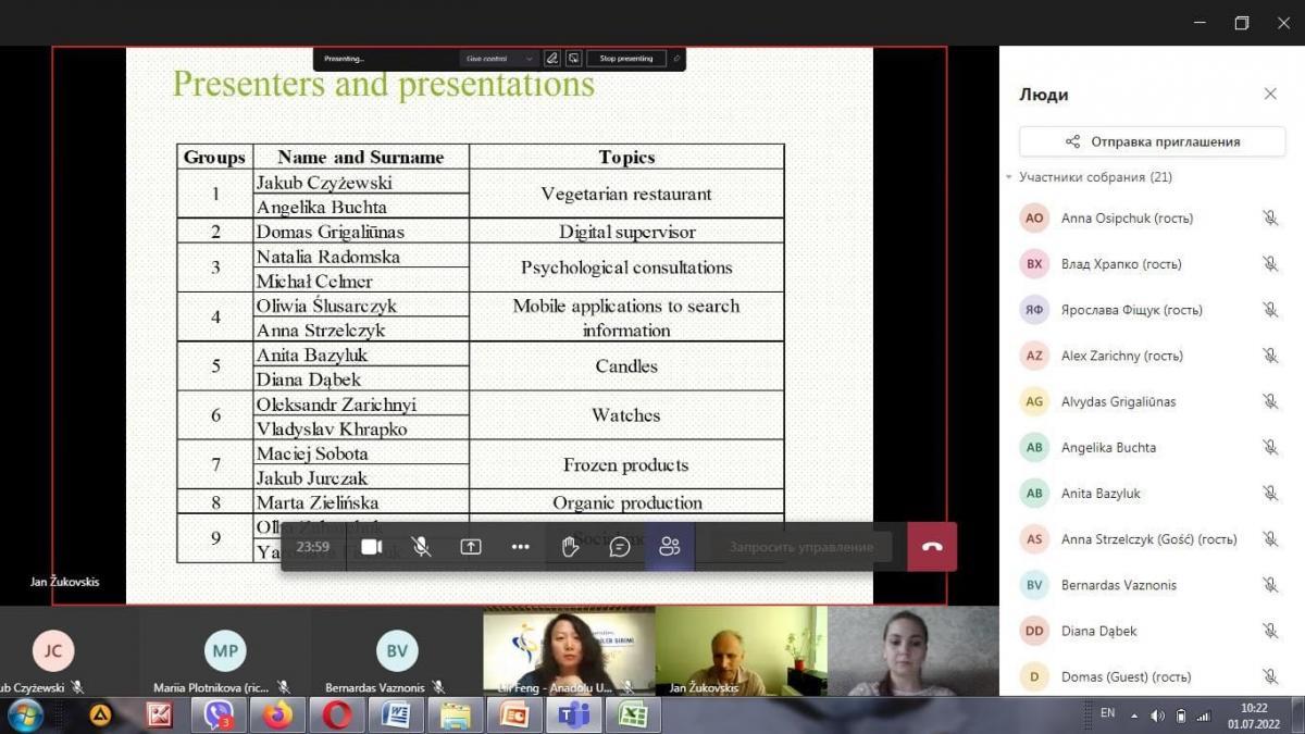 У рамках навчального курсу, який організував університет Вітаутаса Магнуса (Литва), 1 липня відбулася фінальна зустріч, під час якої здобувачі вищої освіти презентували свої проєкти Літньої школи з управління бізнесом «STARTUP-2022».