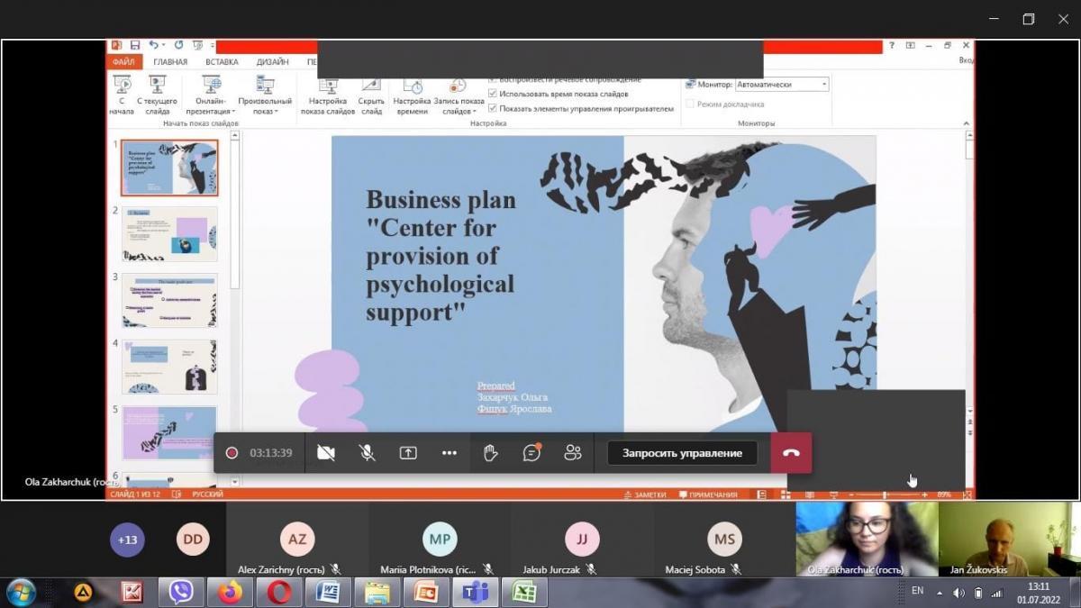 Зокрема, студенти Поліського національного університету (спеціальність «Туризм») Олександр Зарічний та Владислав Храпко представили проєкт «Business plan and budget of «Kilins Watches», а Ольга Захарчук та Ярослава Фіщук – проєкт «Центру психологічної допомоги».