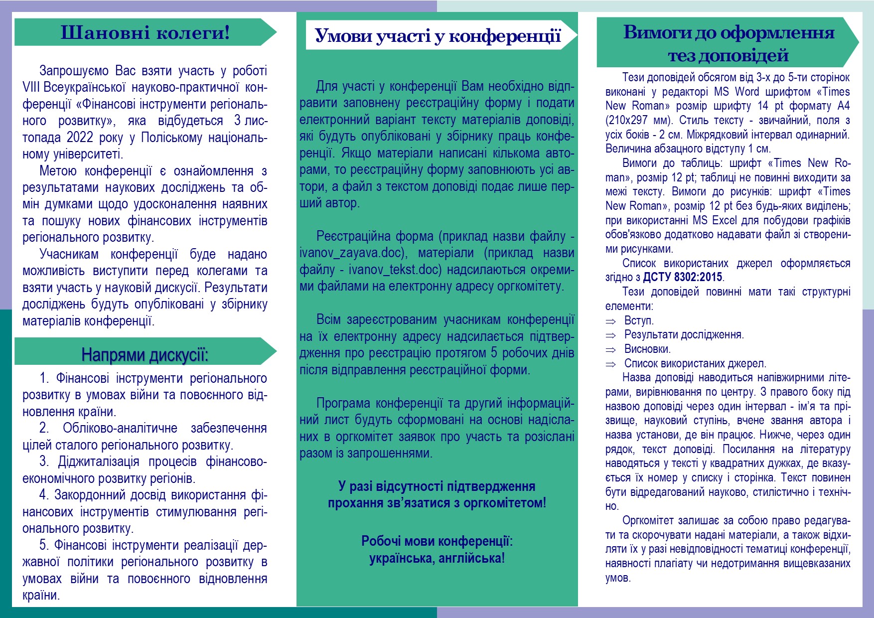 Одержувач - Поліський національний університет код - 00493681, рахунок UA248201720313221002201000272 ДКСУ у м. Києві. Плата за навчання - вказати П.І.Б., курс, факультет, форму навчання (денна чи заочна)