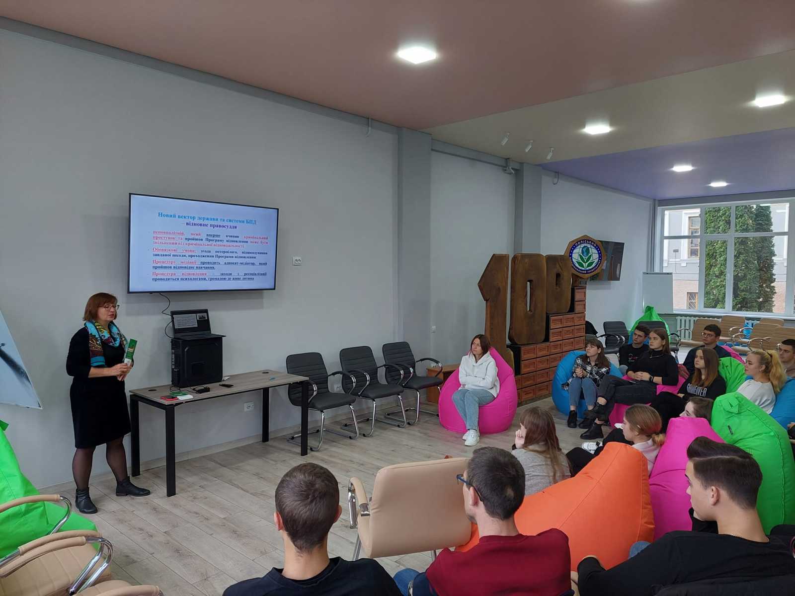 Практичний тренінг на тему «Медіація» для студентів спеціальності «Право» Поліського національного університету провела заступник директора центру з надання безоплатної вторинної правової допомоги Наталія Радушинська.