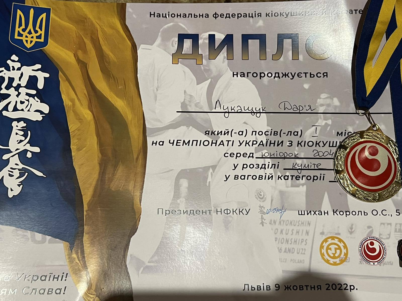 Зокрема, вона посіла І місце у розділі «куміте» серед юніорок та виборола шанс поїхати на чемпіонат Європи.