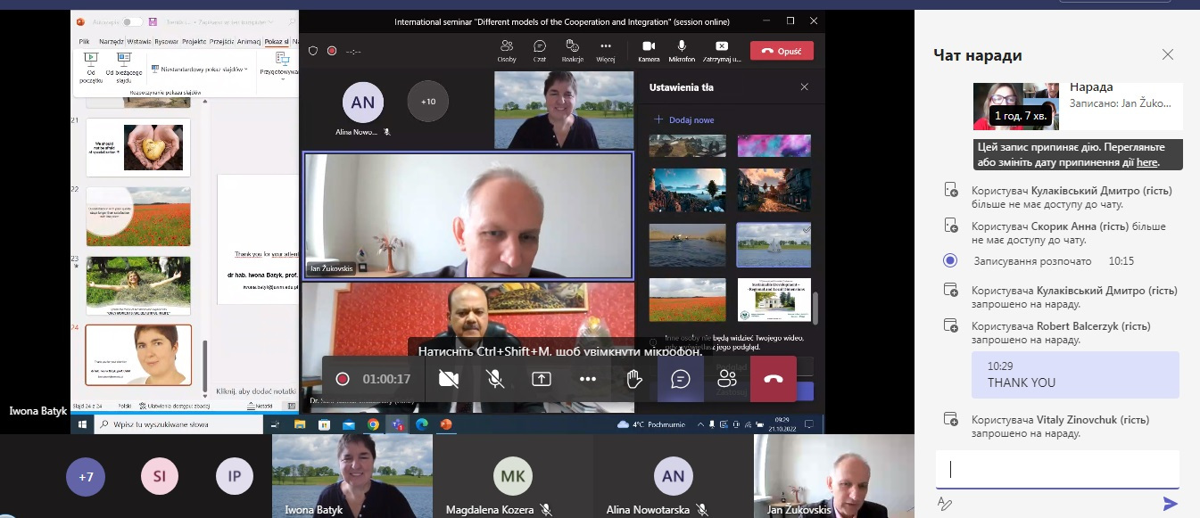 Зокрема, таким чином змогли виступити доцент кафедри економіки, підприємництва та туризму Поліського національного університету Марія Плотнікова, доцент кафедри менеджменту та маркетингу Поліського національного університету Віталій Зіновчук. До семінару також приєдналися студенти спеціальності «Підприємництво, торгівля та біржова діяльність» та спеціальності «Економіка» Поліського національного університету.