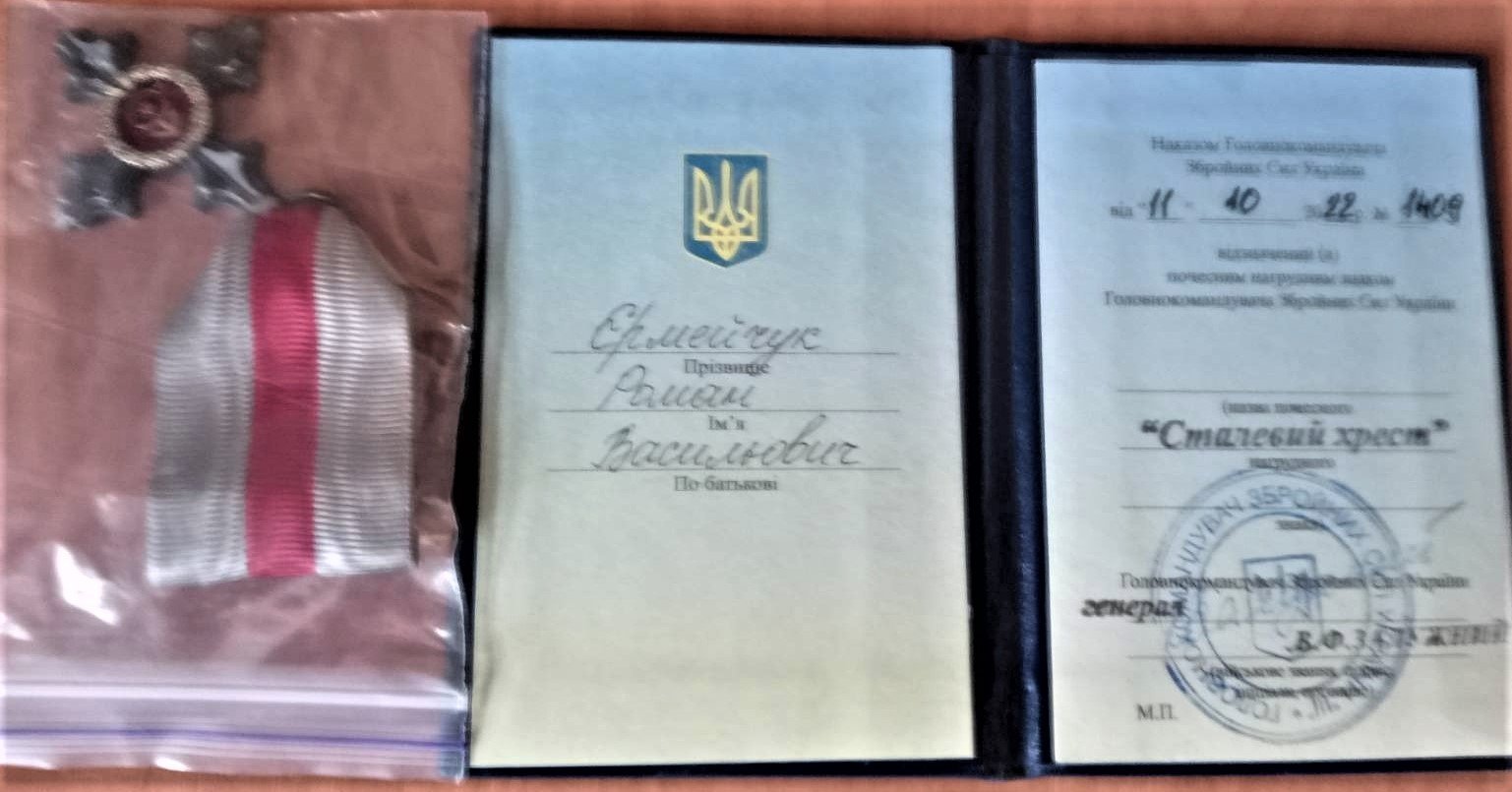 Почесний нагрудний знак «Сталевий хрест»  було вручено студенту І курсу Поліського національного університету факультету лісового господарства та екології,  спеціальність   «Водні біоресурси та аквакультура» –  головному сержанту, командиру 1-го взводу 95  бригади 3-ї роти 13 батальйону Роману Єрмейчуку за героїчний штурм с. Яцьківка  Краматорського району Донецької області.
