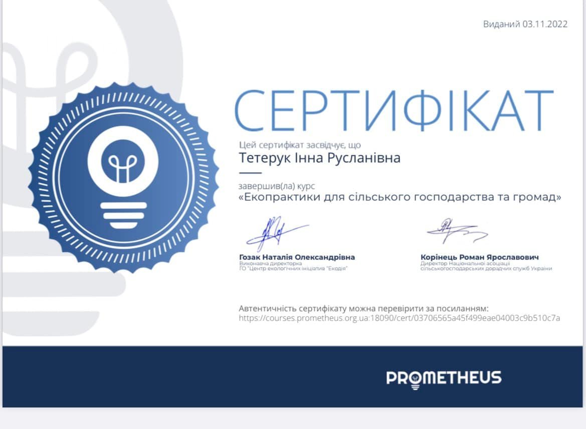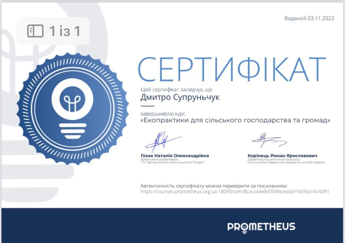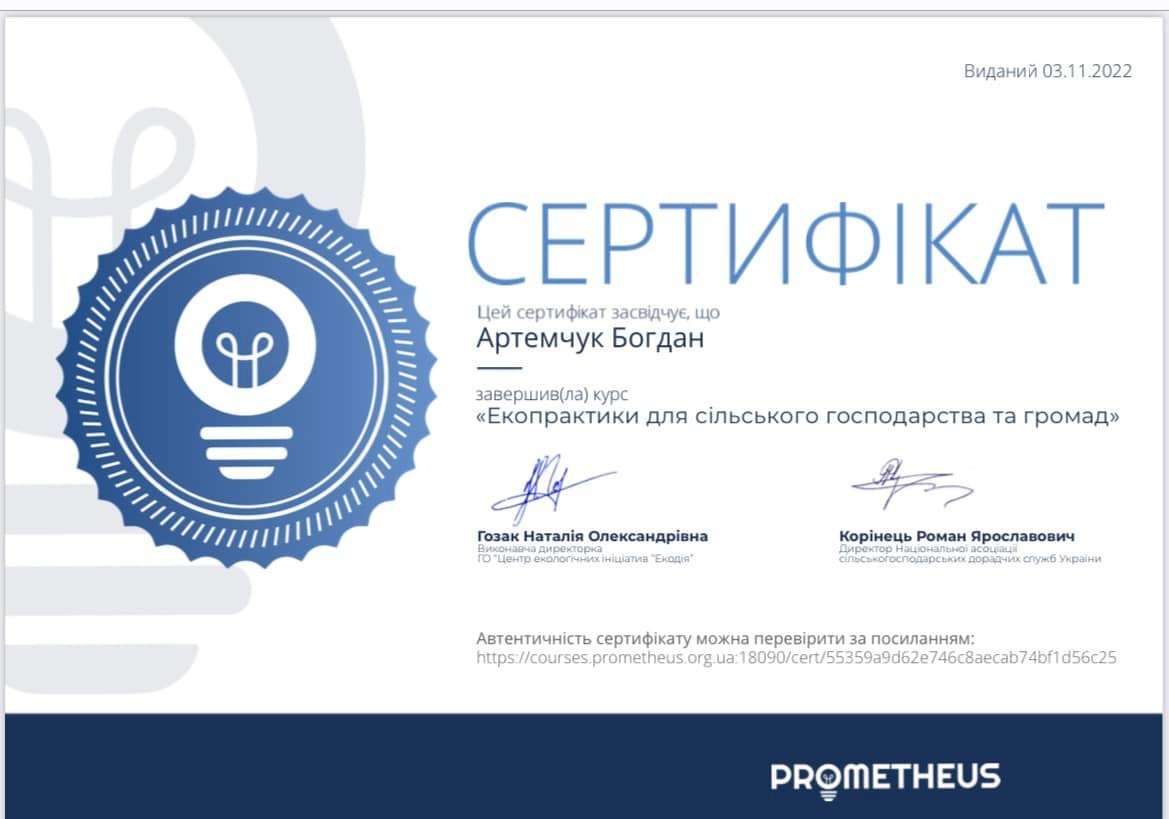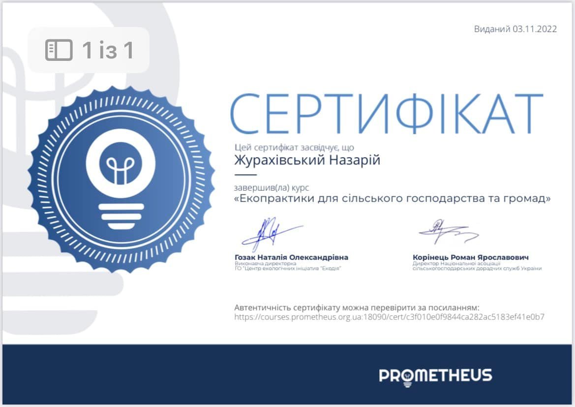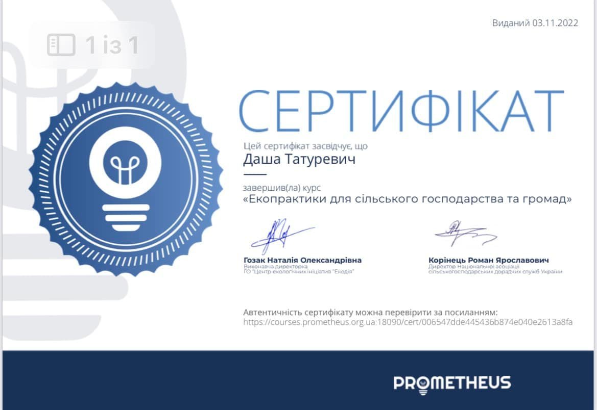 СТУДЕНТИ ПОЛІСЬКОГО УНІВЕРСИТЕТУ ОТРИМАЛИ СЕРТИФІКАТИ КУРСУ «ЕКОПРАКТИКИ ДЛЯ СІЛЬСЬКОГО ГОСПОДАРСТВА ТА ГРОМАД»