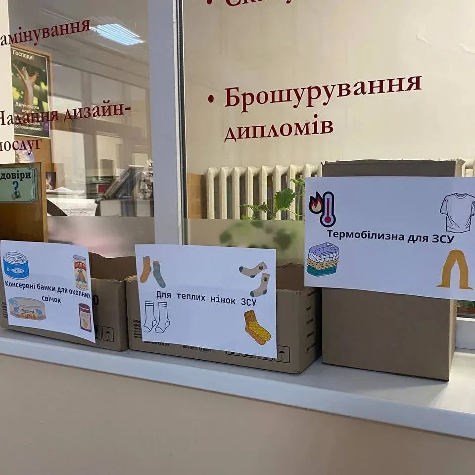 Біля копіцентру в навчальному корпусі №4 встановлені бокси, в яких можна залишити для  бійців ЗСУ: