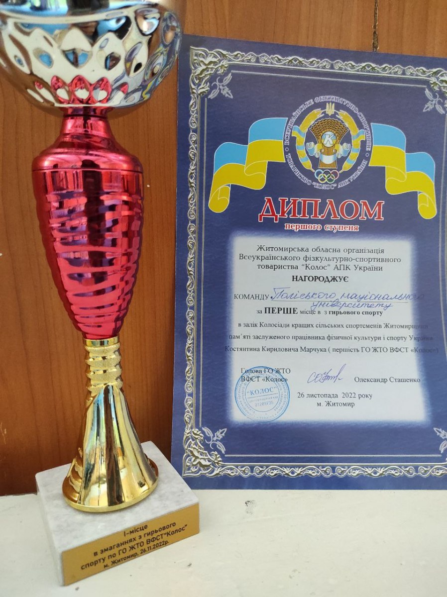У спортивному комплексі Поліського національного університету 26 листопада проходила Колосіада пам’яті заслуженого працівника фізичної культури і спорту К. К. Марчука з гирьового спорту на підтримку ЗСУ.