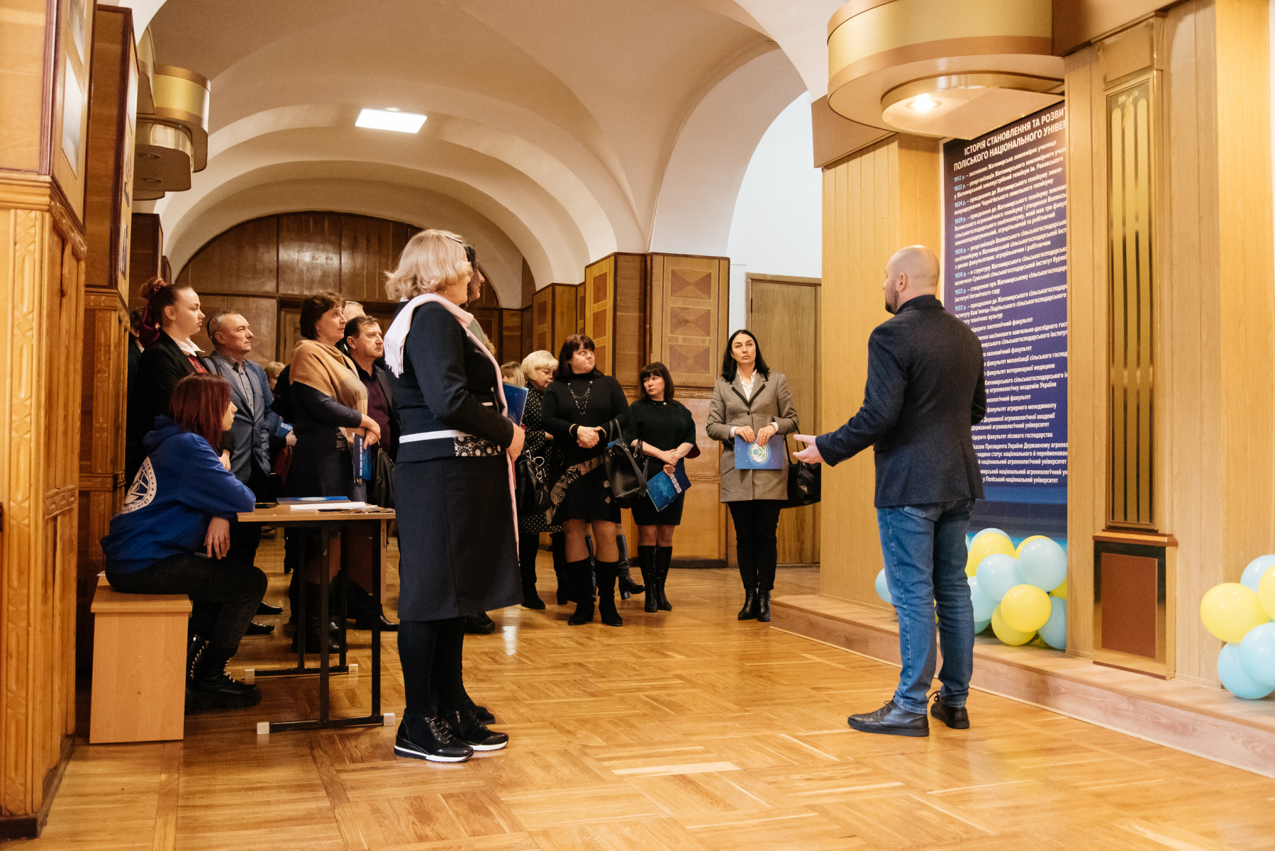 «У нас з вами  спільний фронт – освітній. Маємо робити усе можливе, аби  організувати безпечний простір та  якісний  освітній процес і доступ до нього для школярів й студентів, – звернувся до присутніх ректор Поліського національного університету Олег Скидан. – Продовжуємо працювати в умовах війни і з повним розумінням того, що після перемоги у тому числі наша молодь займатиметься відновленням та розбудовою країни, застосовуючи усі набуті за період навчання знання та навички.  Зараз, як ніколи, важливо допомогти майбутнім абітурієнтам зробити правильний вибір, тобто обрати той фах, який максимально відповідає їх запитам, інтересам, компетенціям, аби у подальшому вони могли максимально реалізуватися професійно. Переконаний, що  сьогоднішня наша зустріч сприятиме налагодженню діалогу між освітянами й науковцями і  подальшої співпраці у визначених напрямках діяльності».