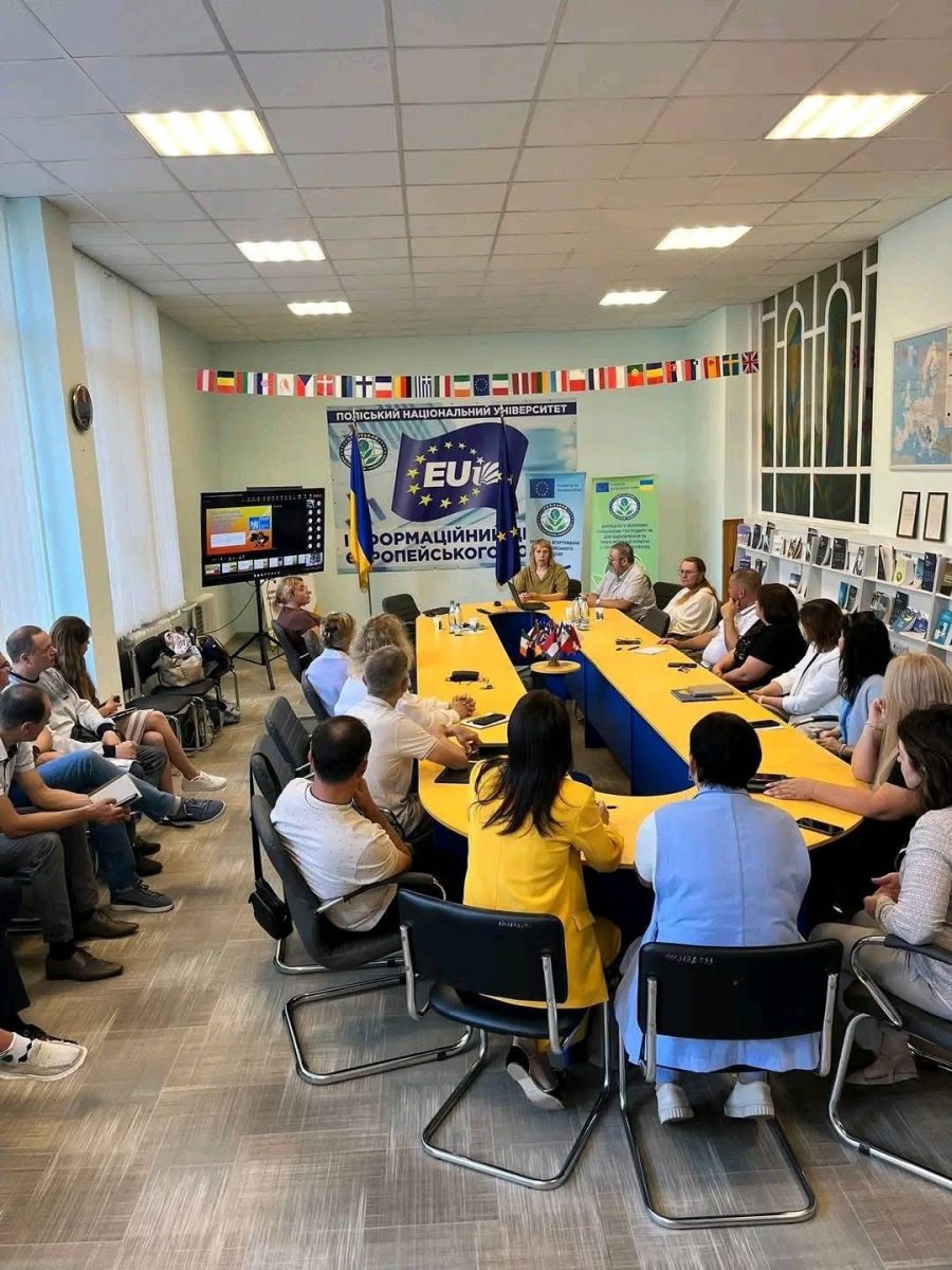 Науковці Поліського національного університету – к.е.н., доц. Людмила Тарасович (кафедра менеджменту та маркетингу), к.пед.н., доц. Майя Ковальчук (кафедра компютерних технологій і моделювання систем), к.юрид.н., доц. Наталія Бондарчук (кафедра правознавства), к.е.н., доцент Петро Пивовар та к.е.н., доцент Павло Топольницький (ННЦ космічних та геоінформаційних технологій) вже активно залучені до реалізації Міжнародного проекту «Strengthening the capacity and transfer of knowledge at universities for the development of affected areas of Ukraine 2», метою якого є посилення наукового потенціалу університетів та формування стратегій відновлення українських регіонів, які зазнали втрат унаслідок війни.