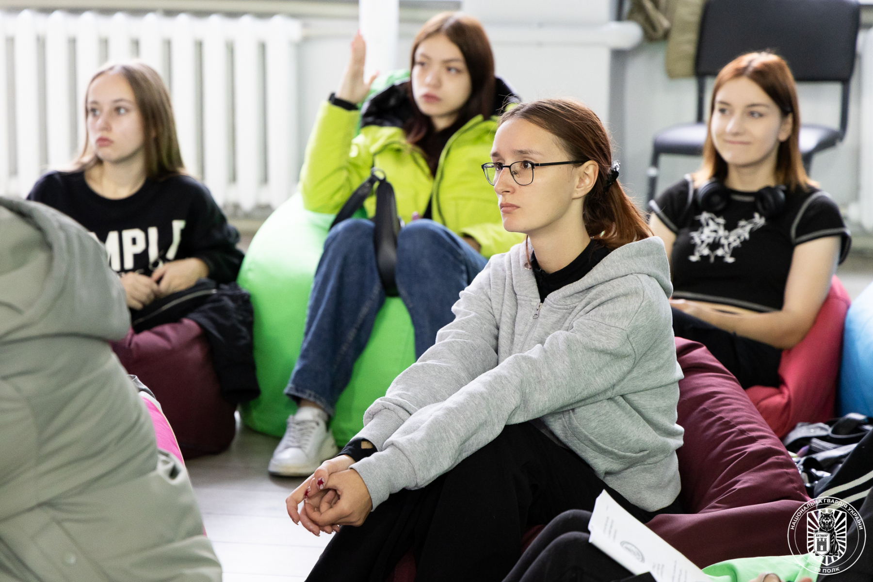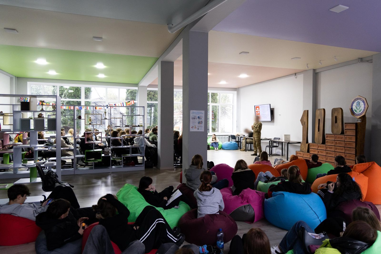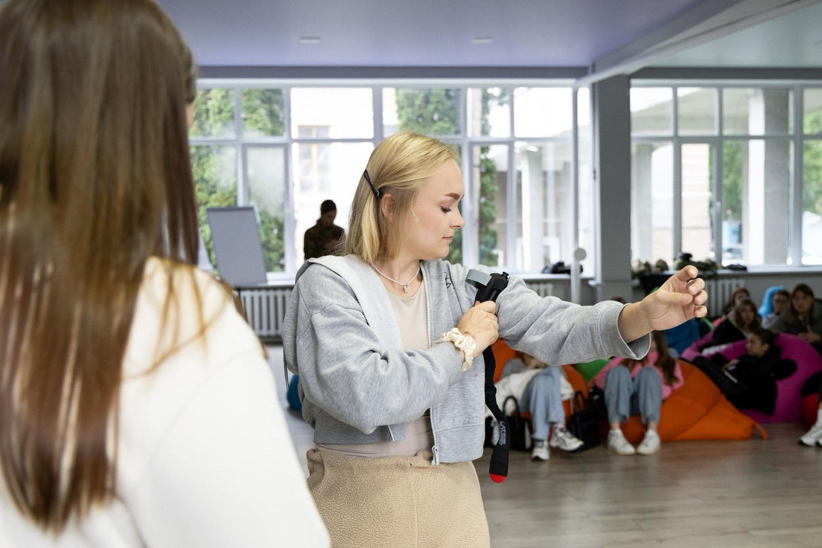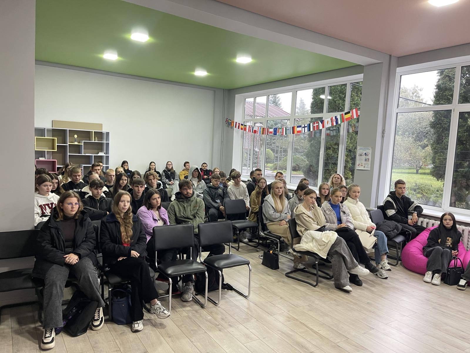 До студентів завітали військовослужбовці 38-го полку Національної гвардії України. Офіцер полку провів інтерактивну зустріч зі студентами, де говорили про патріотизм, відповідальність і силу єдності. Інструктор з тактичної медицини показав, як правильно накладати турнікет і зупиняти кровотечу – студенти не просто слухали, а пробували все на практиці.