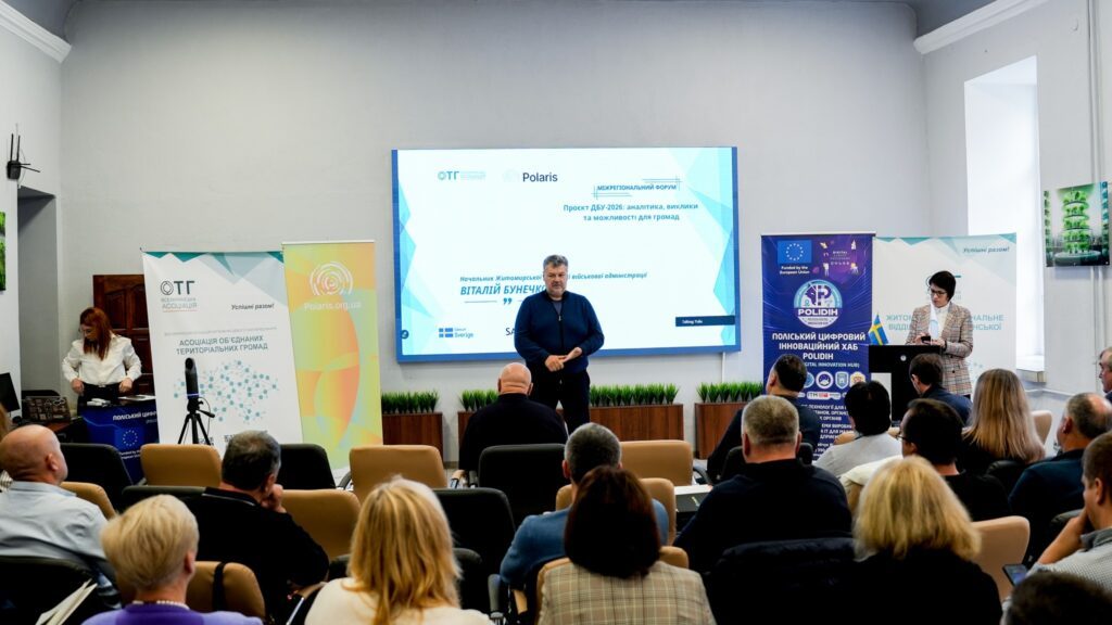 Захід відбувся за підтримки програми «Polaris», що сприяє зміцненню спроможності громад і розвитку місцевого самоврядування в Україні. До присутніх, серед яких – представники громад, органів місцевого самоврядування, бізнесу та партнерських організацій, з вітальним словом звернувся начальник Житомирської ОВА Віталій Бунечко.