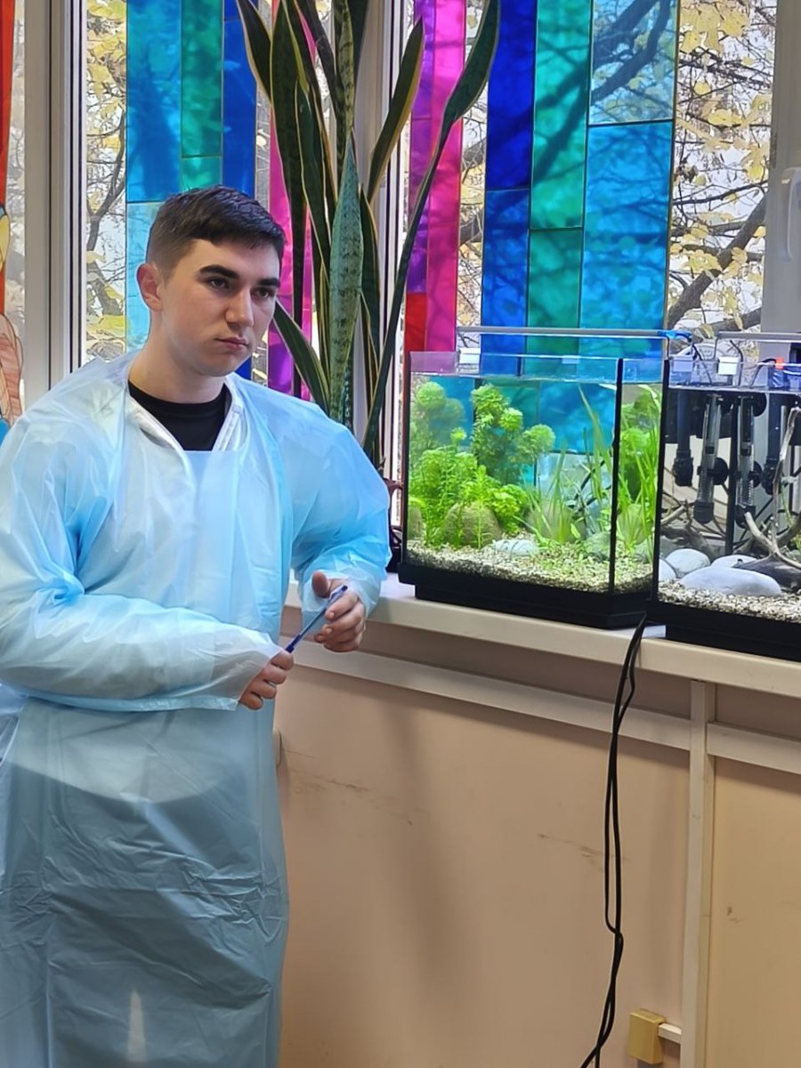 Важливо, що заняття було проведено безпосередньо в умовах лабораторії акваріумного рибництва та аквадизайну Поліського національного університету. Це дозволило студентам не лише засвоїти теоретичні знання, але й наочно побачити та пов’язати принципи утримання модельних об’єктів (декоративних риб) із технологіями, що використовуються у промисловій аквакультурі (вирощування осетрових, коропових та ін.).