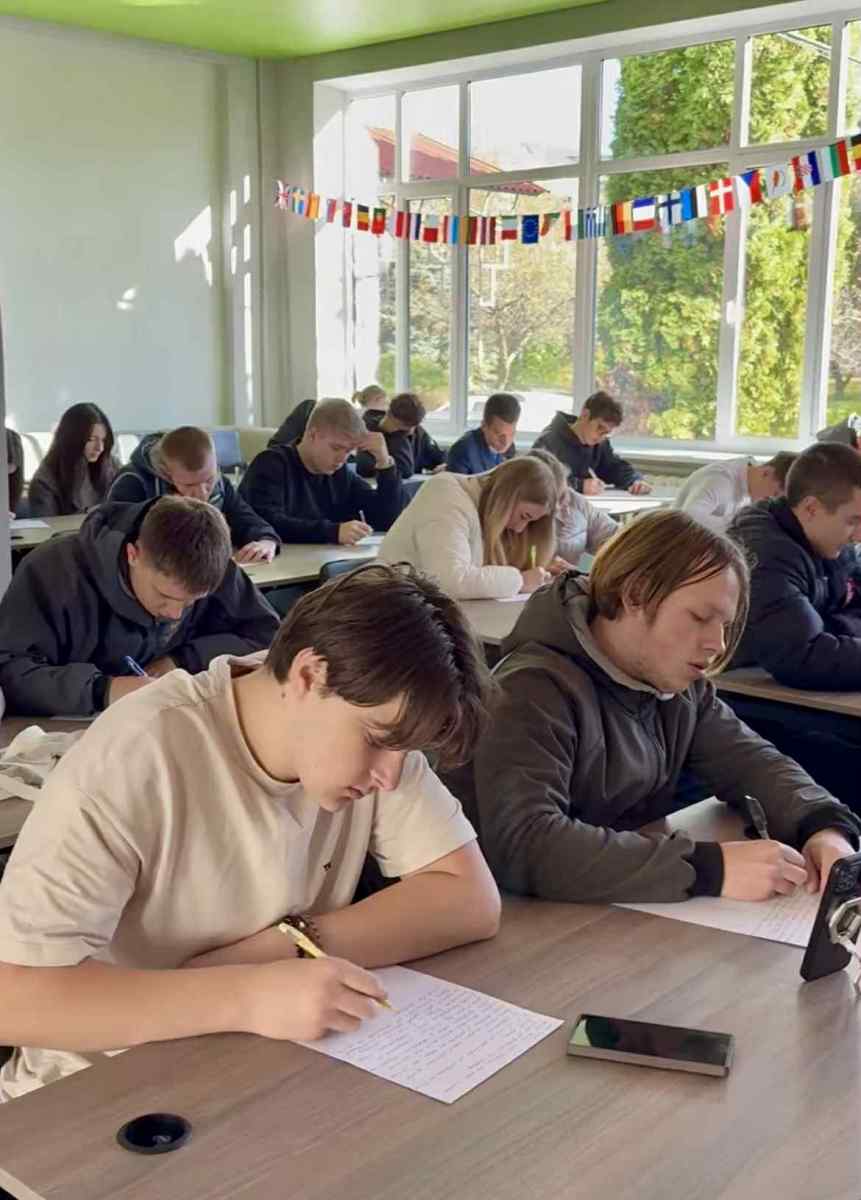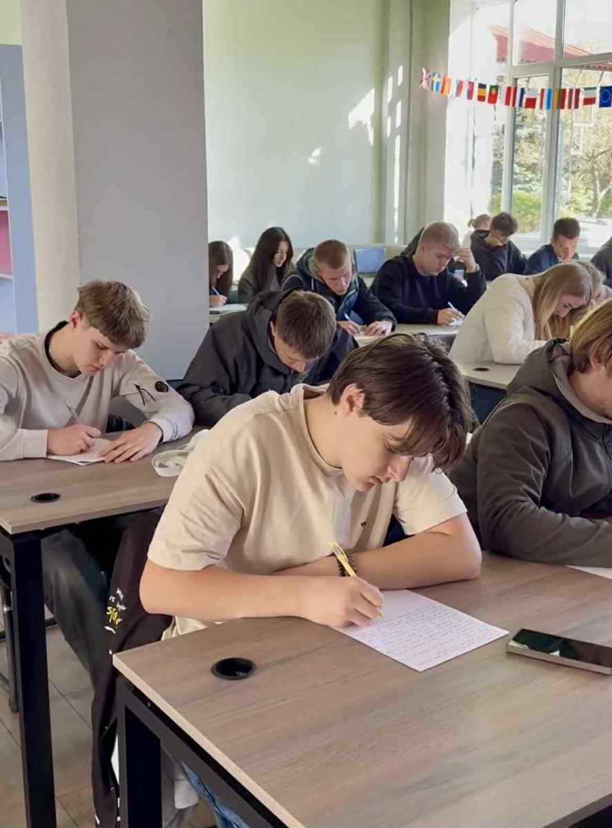 Цьогоріч з цієї нагоди зібралися спільно 27 жовтня у стінах коворкінгу. Зокрема, до написання Всеукраїнського диктанту долучилися студенти різних курсів факультету інформаційних технологій, обліку та фінансів на чолі зі старшою викладачкою кафедри іноземних мов Поліського національного університету Варварою Заєць.