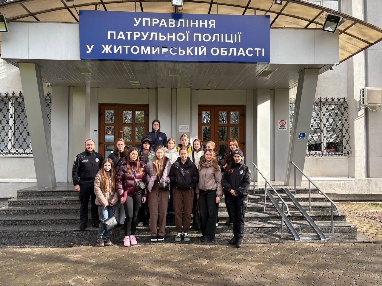 Здобувачі ОП «Підприємництво та торгівля» Поліського національного університету 29 жовтня під керівництвом старшого викладача кафедри економіки, підприємництва та туризму Маріни Коценко відвідали Управління патрульної поліції міста Житомир.