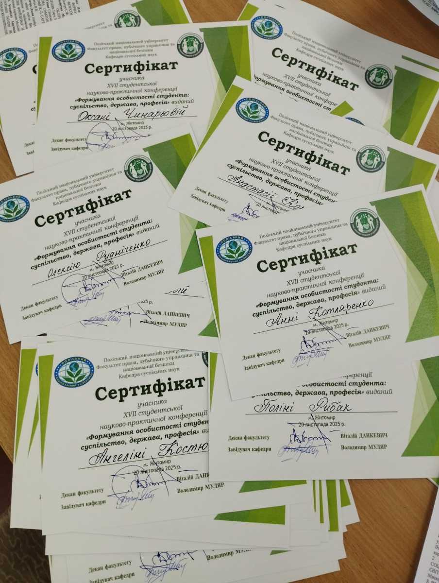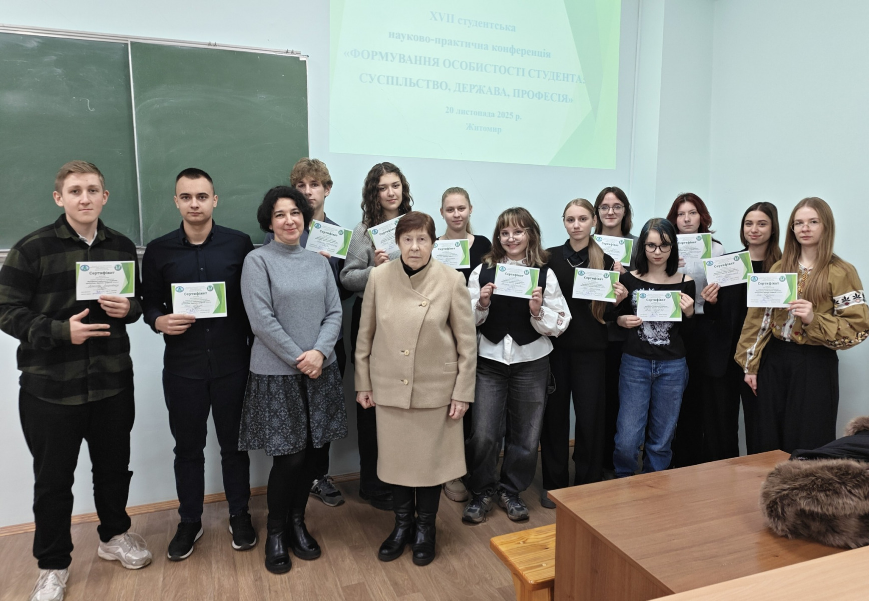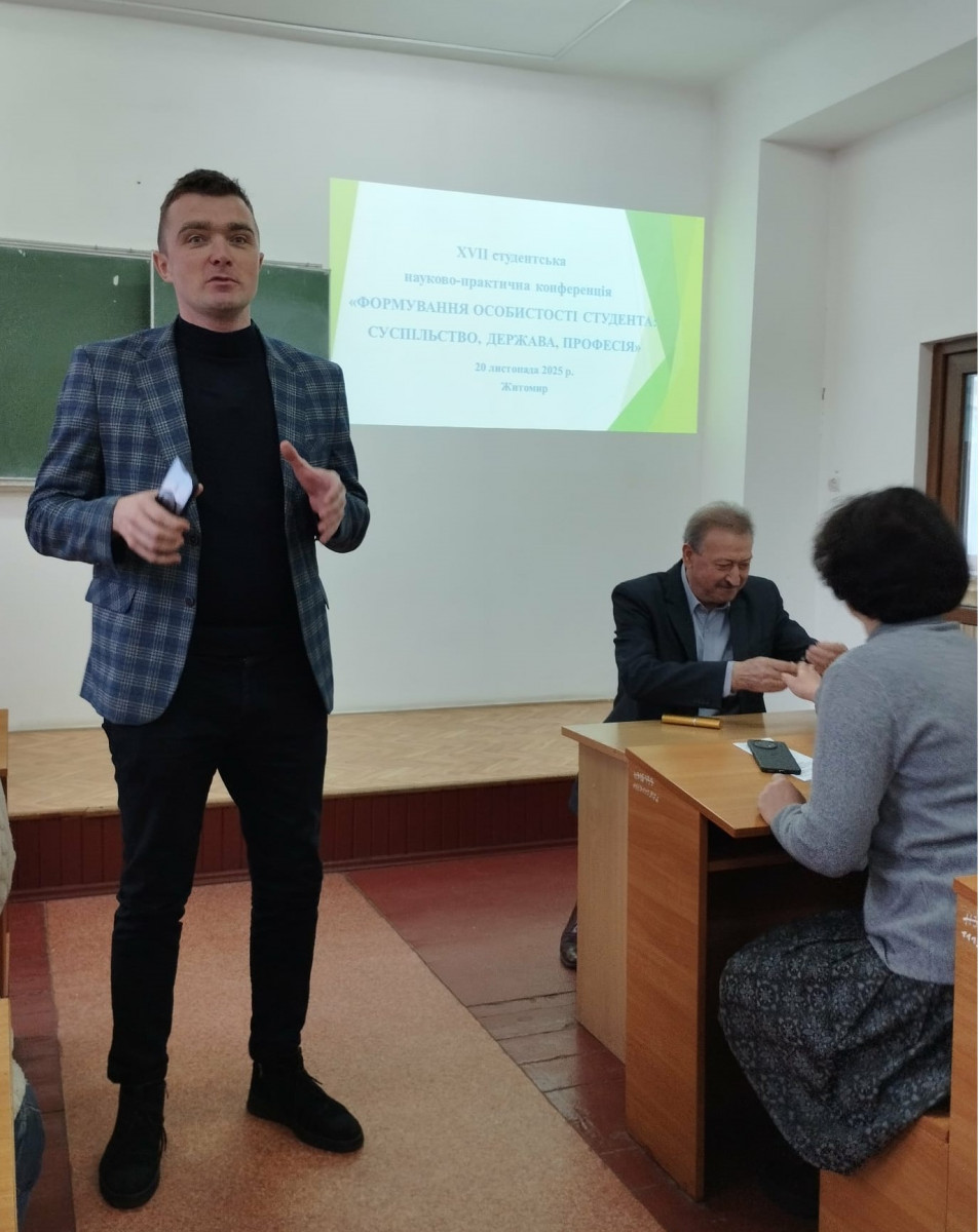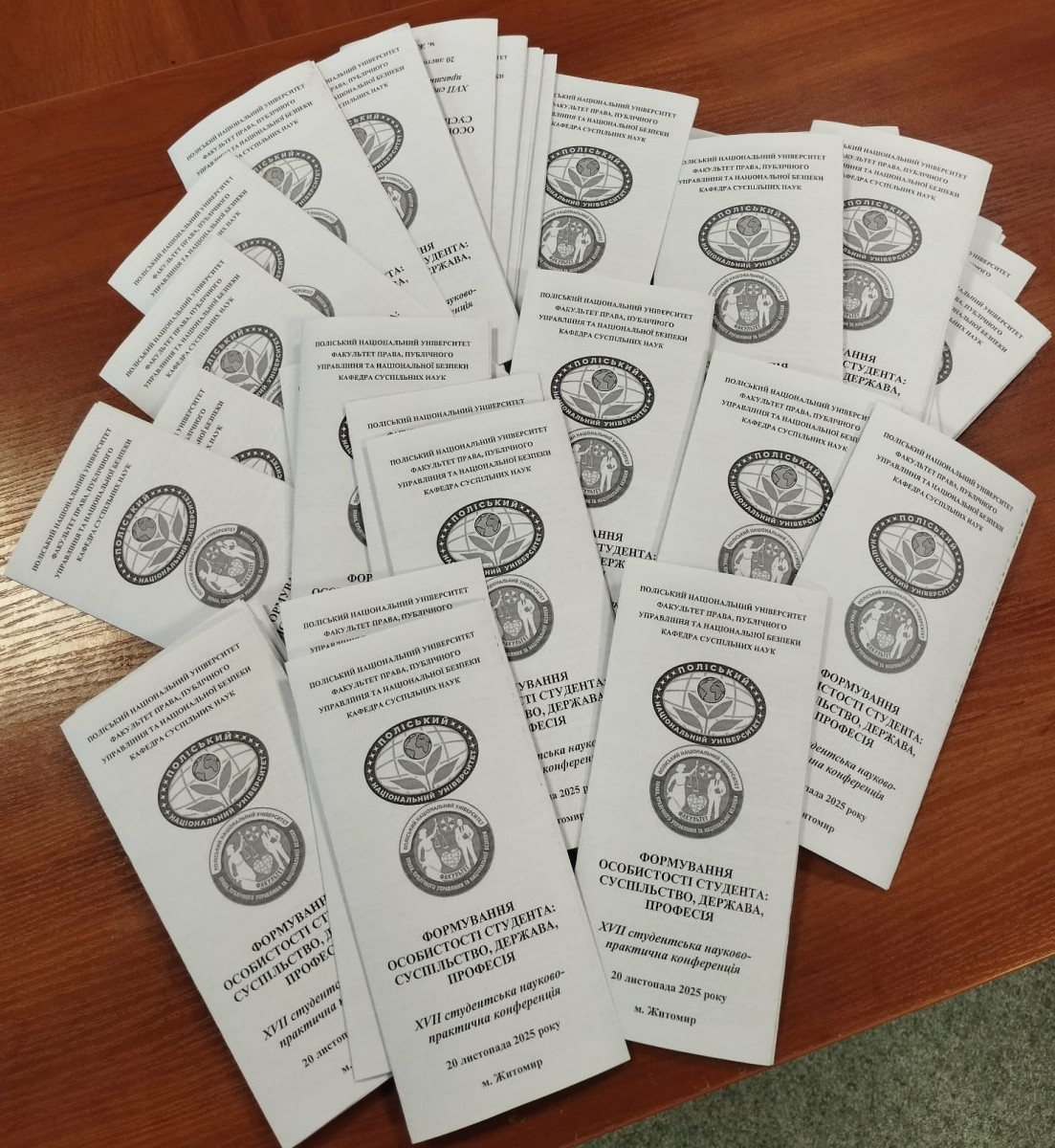 У Поліському національному університеті 20 листопада відбулася XVII студентська науково-практична конференція «Формування особистості студента: суспільство, держава, професія», яку готує і організовує кафедра суспільних наук. Серед 58 учасників заходу, які працювали у двох секціях («Філософія та політологія», «Історія, культура та краєзнавства») – юні науковці Поліського університету, до яких долучилися здобувачі вищої освіти Житомирського державного університету ім. І. Франка, Житомирського військового інституту ім. С. П. Корольова, а також Відокремленого структурного підрозділу Житомирського торговельно-економічного коледжу Київського національного торговельно-економічного університету.