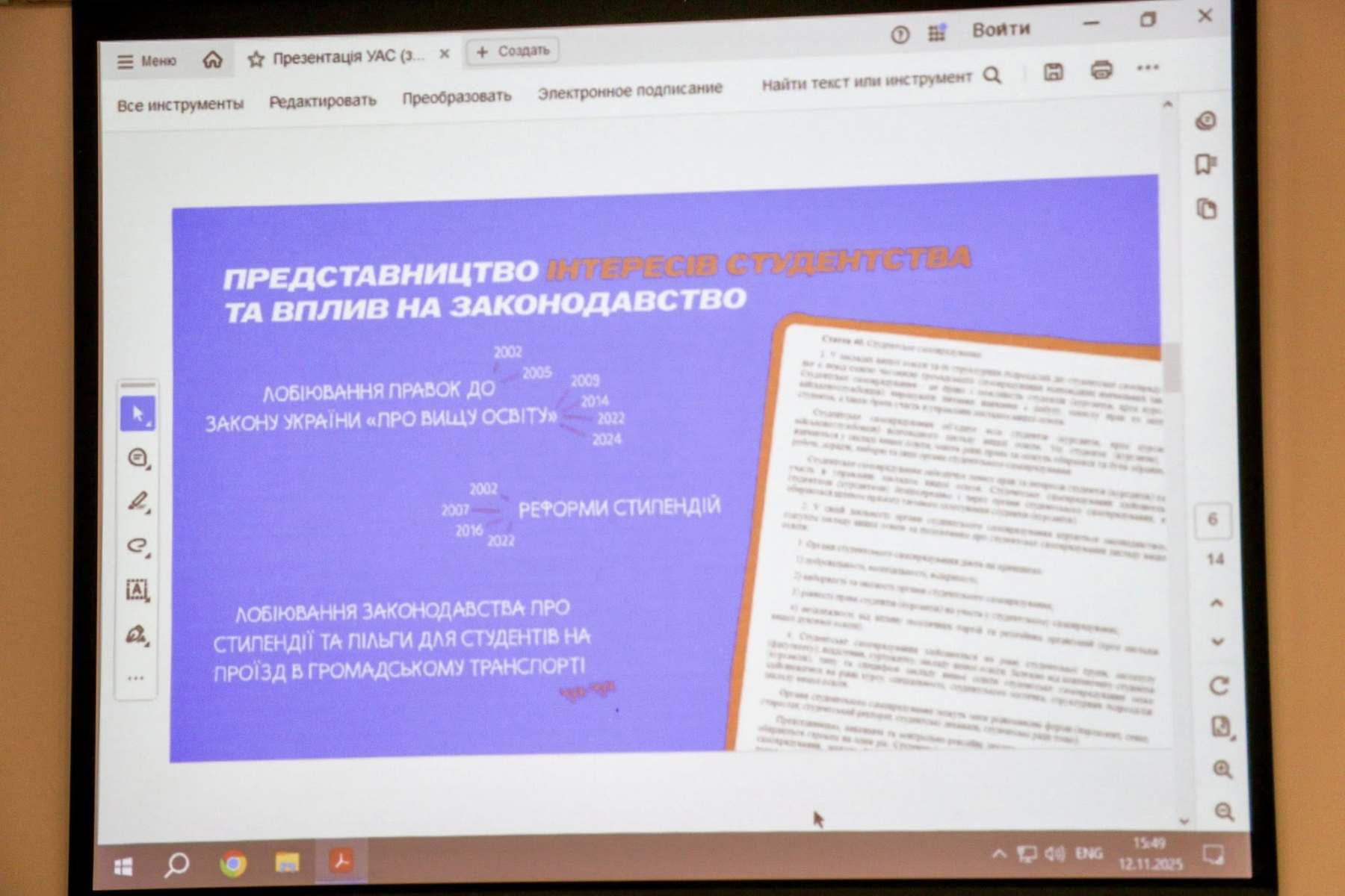 Напередодні Дня студента у приміщенні Житомирської міської ради відбулася зустріч під головуванням Вероніки Богінської, яка є керівницею відокремленого підрозділу Української асоціації студентів (УАС) в Житомирській області.