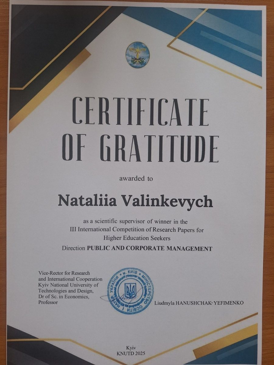 Зокрема, 24 жовтня на базі Київського національного університету технологій та дизайну відбулася підсумкова науково-практична конференція за напрямом «Public and Corporate Management».