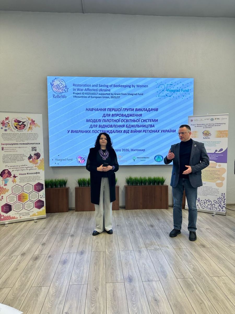 20–22 лютого 2026 року у Поліському національному університеті відбувся триденний тренінг у межах упровадження нової освітньої моделі з бджільництва міжнародного проєкту ReBeWo – “Restoration and Preservation of Beekeeping by Women in War-Affected Ukraine”, що реалізується за підтримки Міжнародного Вишеградського фонду (№ 22510217, 2025–2027).