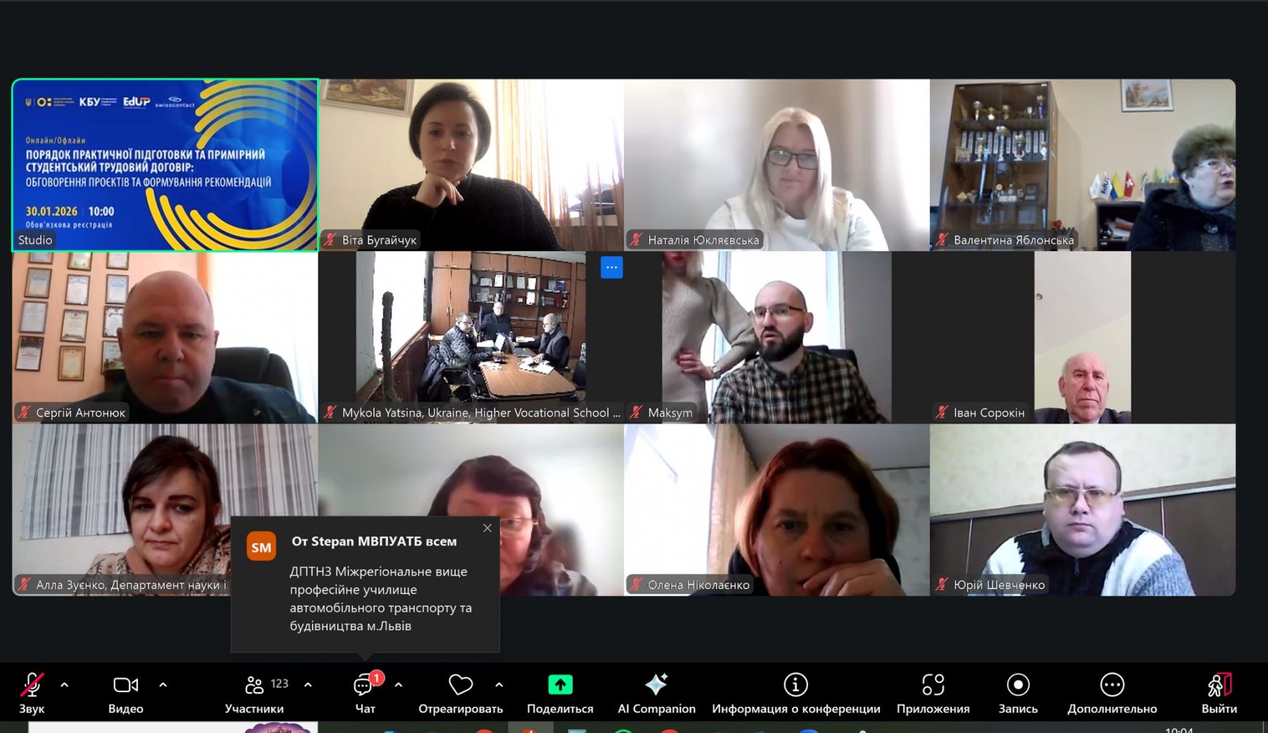 Учасники висловили пропозиції та зауваження щодо змісту документів, обговорили можливі покращення, а також отримали детальну консультацію юридичних експертів і представників МОН щодо майбутньої реалізації практичної підготовки та укладання договорів.