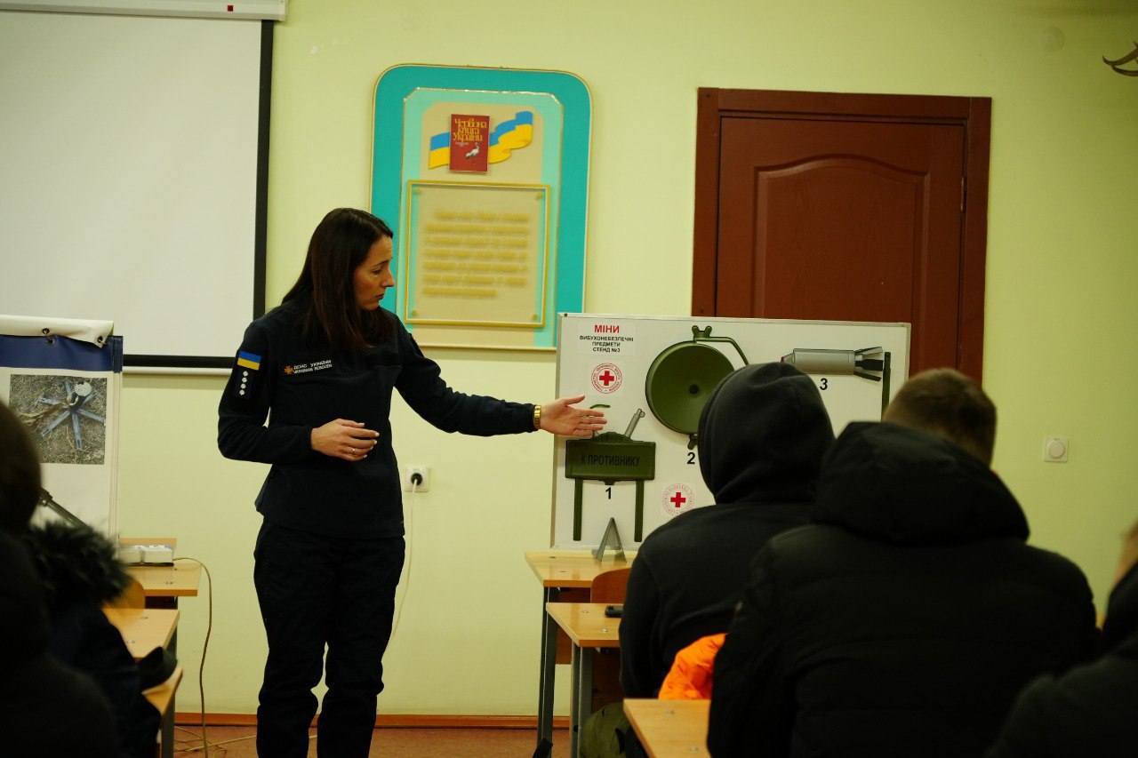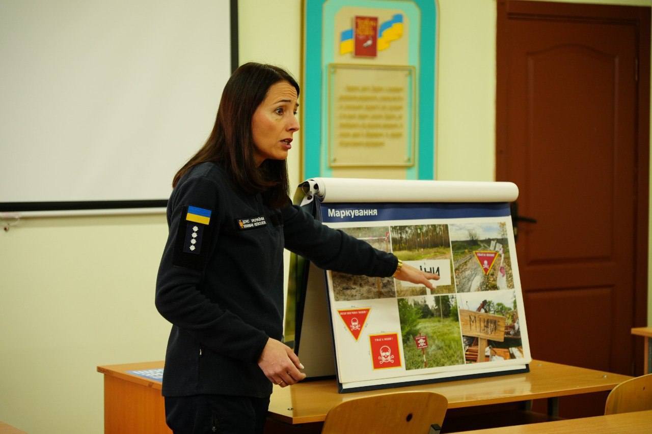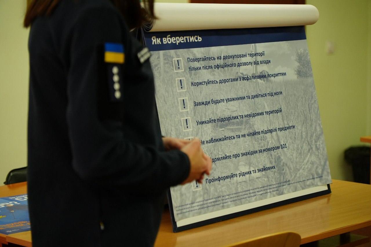 Анастасія Гейзе продемонструвала присутнім наочні матеріали, що сприяло кращому розумінню потенційних загроз і правильну поведінку в небезпечних ситуаціях.