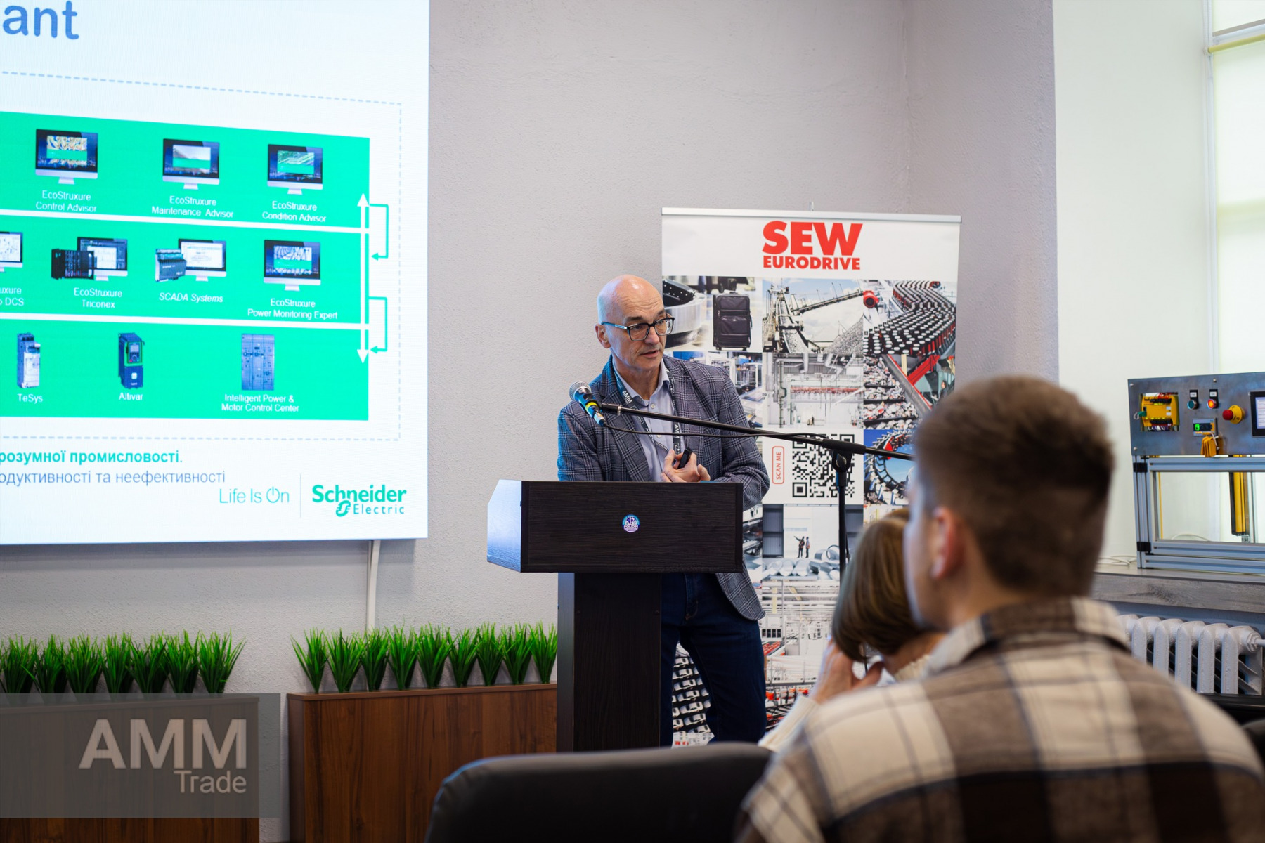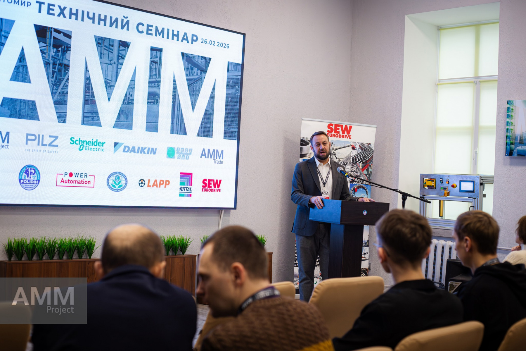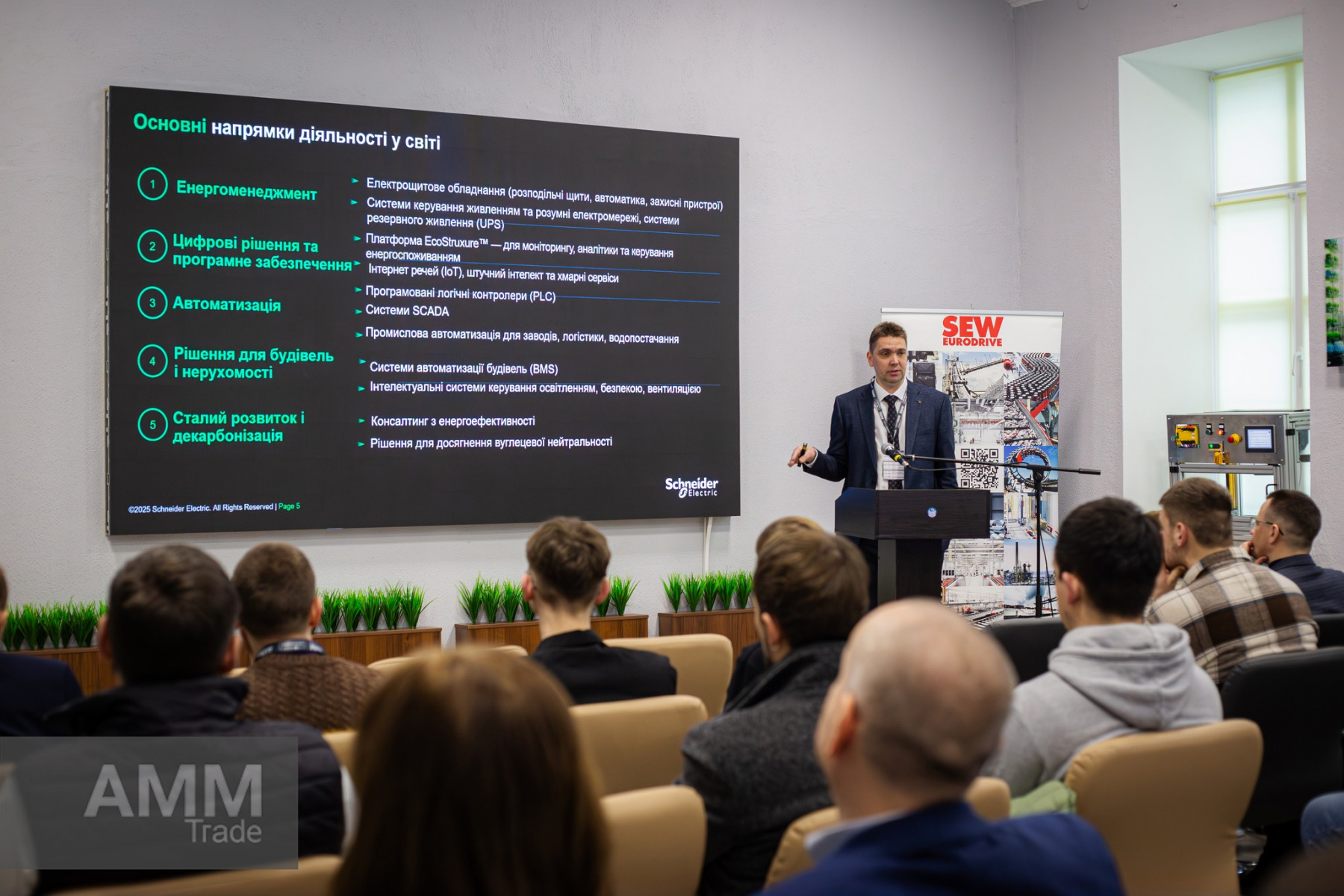 Технічний семінар зібрав експертів у галузі промислової автоматизації та високотехнологічних рішень, а також провідних постачальників обладнання – «АММ Проєкт», «AMM Industry School», «Daikin», «Schneider Electric», «Lapp», «Pilz», «Rittal», S»EW-EURODRIVE», «Indu-Sol» і «Power Automation».