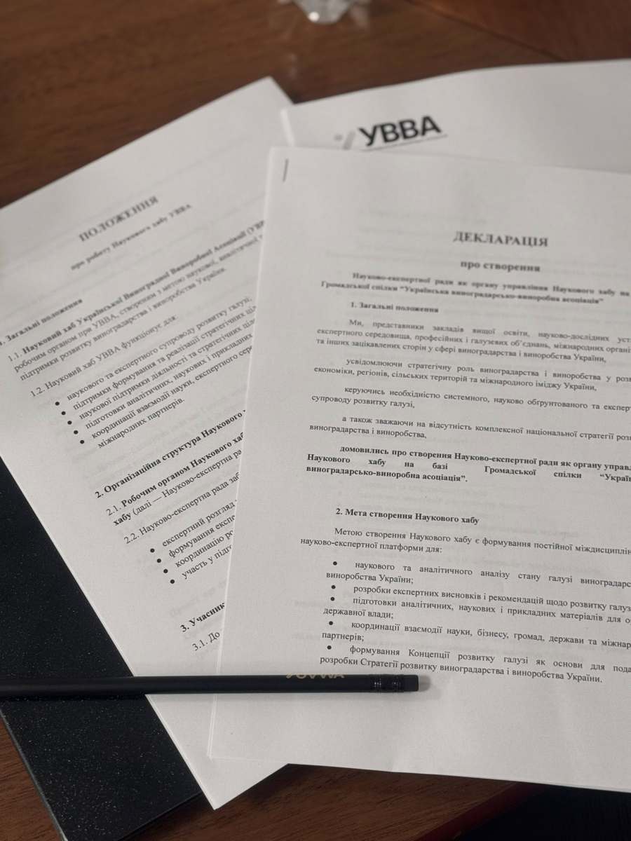 За результатами зустрічі учасники спільно проголосили та підписали Декларацію про створення Науково-експертної ради як органу управління Науковим хабом на базі ГС «УВВА». Також були підписані меморандуми про співпрацю з партнерами, що передбачають консолідацію зусиль для наукового забезпечення сталого розвитку виноградарства і виноробства в Україні. Це крок до модернізації галузі, залучення інвестицій та посилення конкурентоспроможності українського вина на світовому ринку, – зазначають у ГС «Українська виноградарсько-виноробна асоціація».