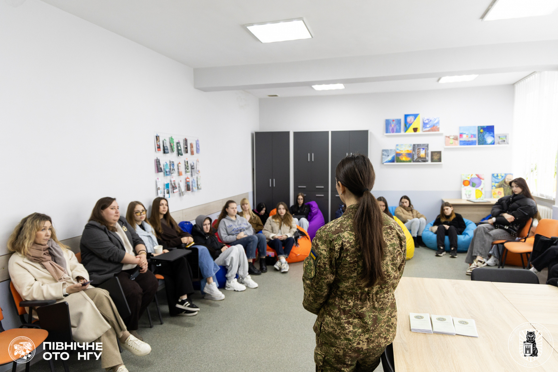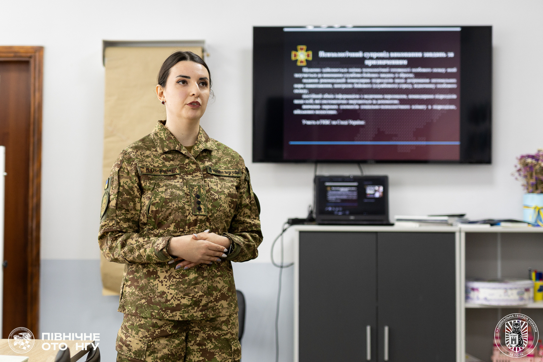 Старший офіцер відділення психологічного забезпечення 38 Поліського полку Національної гвардії України Вікторія Ременюк відвідала Поліський національний університет і поспілкувалася зі студентами, які здобувають освіту за спеціальністю «Психологія». Головна мета  – ознайомити майбутніх фахівців із особливостями служби та можливостями професійної реалізації в лавах НГУ.