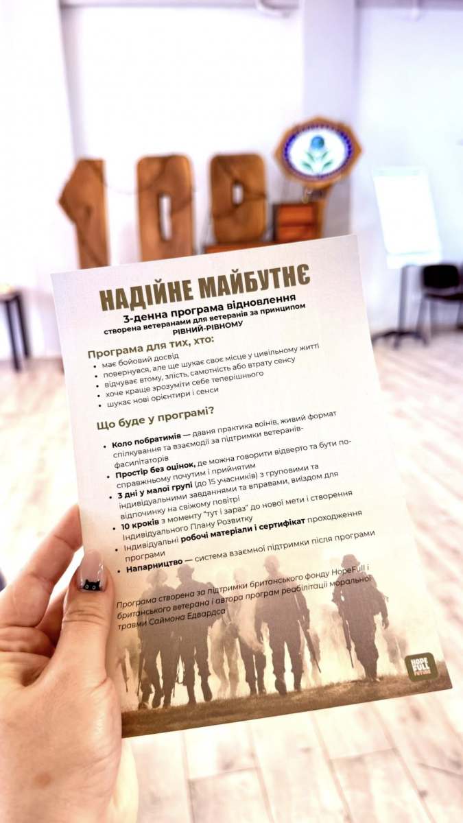 «Програма «Надійне майбутнє» реалізується в Україні з 2024 року і вже охопила різні регіони країни. Вона розвивається за підтримки британських благодійних фондів, руху «Ветерани – шлях додому», українських університетів та громадських організацій. Ініціатор програми – британський ветеран Саймон Едвардс, засновник програм відновлення з моральної травми у Великій Британії (Serve On), автор програм для Help for Heroes, стипендіат Churchill Fellowship, – розповів Віталій Данкевич. – Після завершення тренінгів у Житомирі учасники отримали сертифікати та можливість пройти подальше навчання для ведення груп взаємопідтримки ветеранів. Такі ініціативи є важливим елементом психологічного відновлення, соціальної адаптації ветеранів та формування сильних ветеранських спільнот в Україні».