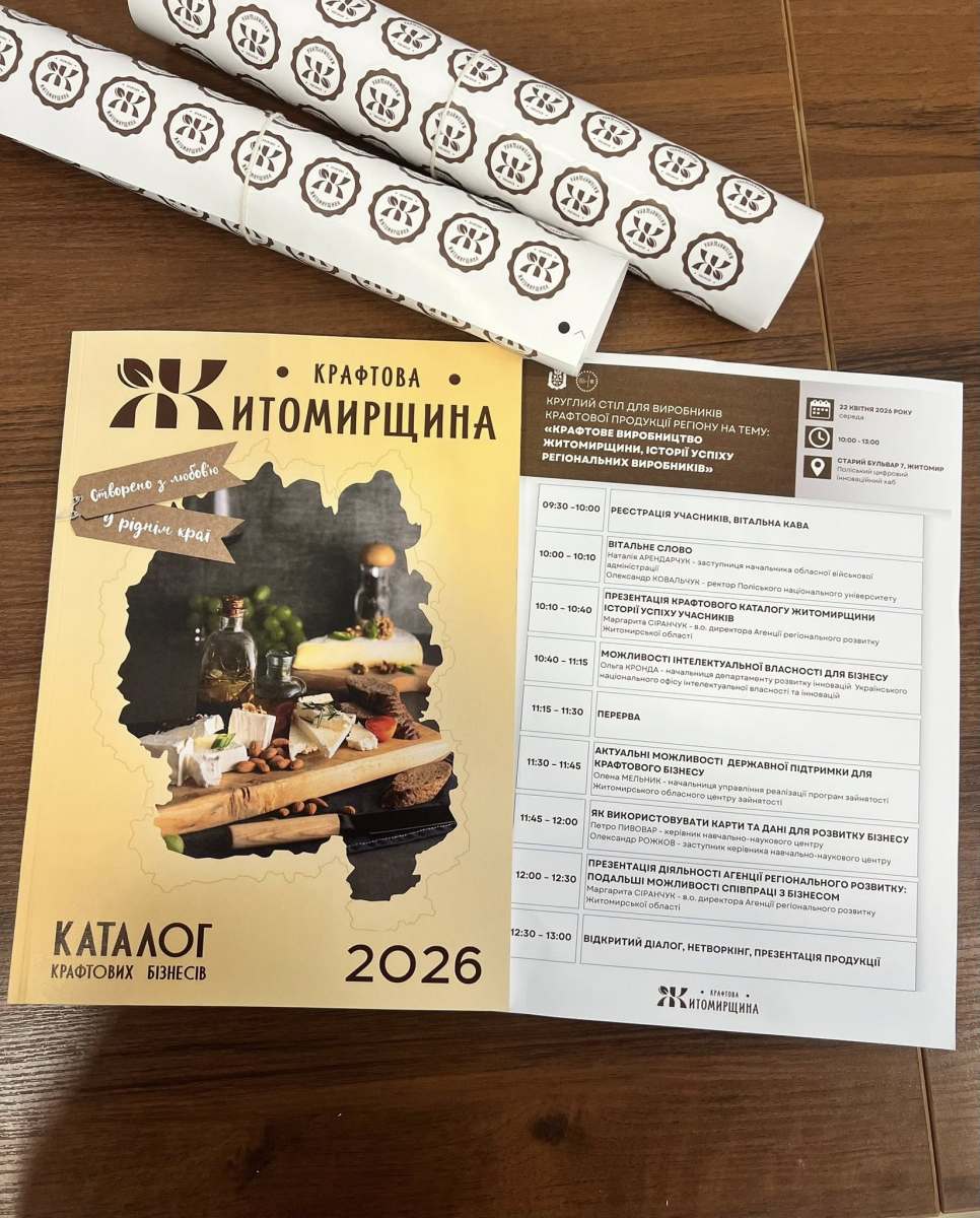 На базі Поліського національного університету 22 квітня відбувся круглий стіл для виробників крафтової продукції регіону   –  «Крафтове виробництво Житомирщини: історії успіху регіональних виробників», який об’єднав представників влади, профільних установ і малого бізнесу навколо розвитку локального виробництва як важливої складової економіки області.